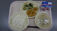 ご飯 キャベツのみそ汁 鶏天 酢物 牛乳