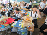 3時間目に体育でたくさん体を動かしてお腹はぺこぺこ!給食着の準備もばっちりです。