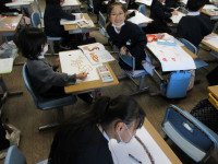 3年生が、物語の絵をかいています。