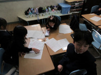 別のクラスでは、生活科で昆虫の絵をかいたり、色を塗ったりしていました。