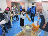 もちつきをして、それを振る舞いながら交流を図っていました。