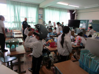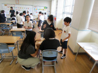 5年生が、家庭科でエプロンを作っています。