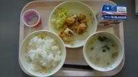 ご飯 牛乳 小松菜のみそ汁 鯛の竜田揚げ 即席漬け 納豆