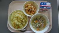 カレーピラフ 牛乳 ミネストローネ 鯛のアーモンド揚げ
