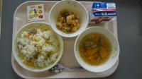 コーンピラフ 牛乳 野菜たっぷりスープ ホキのフルーツソース チーズ