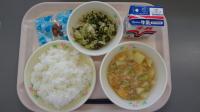 ご飯 牛乳 じゃがいものそぼろ煮 ごま酢あえ アーモンド
