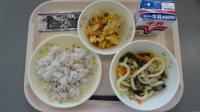 五穀米入りご飯 牛乳 わかめうどん かきあげ のり