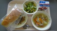 パン 牛乳 洋風煮込み 茎わかめのサラダ 大豆いりこ
