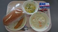 黒糖パン 牛乳 枝豆スープ ししゃもフライ コーンサラダ