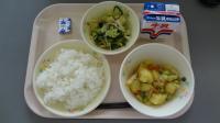 ご飯 牛乳 じゃが芋のカレー風味 アーモンド和え チーズ