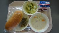パン 牛乳 クリームスープ コーンサラダ 小煮干しの磯香揚げ