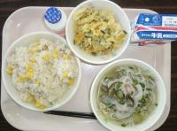 トウモロコシご飯 にゅうめん かぼちゃのかき揚げ 飲むヨーグルト 牛乳