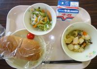 黒糖パン 牛乳 高野豆腐の中華炒め ナムル トマト