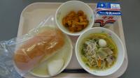 パン 牛乳 ビーフン汁 じゃが芋とえびのケチャップ炒め 新高梨