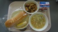 媛麦パン 牛乳 きのこスープ 豚肉と野菜の炒め物 りんご