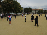 中庭が使えないので、低学年も芝生のところで仲良く遊んでいました。