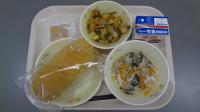媛麦パン ビーフン汁 ホキの甘辛煮 りんごジャム 牛乳