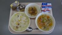 コーンピラフ 野菜たっぷりフライドチキン クリスマスケーキ 牛乳