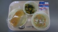 豆パン ミネストローネ ホキの青菜和え 牛乳