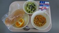 パン ポークビーンズ しょうゆドレッシングサラダ はれひめ 牛乳