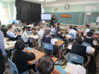 不審者が校内に入ってきたことを想定して、どのように逃げたり、身を守ったりすればよいか、子どもたちだけでなく、私たち教職員も確認しました。