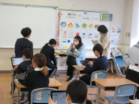 昼休みに、潮見音読隊による1・2年生対象の怖い話の読み聞かせを行いました。