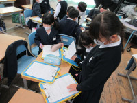 ソーイング(6年生) 2025年11月19日 12時27分 6年生が、目的に沿った小物を布で作りました。 巾着袋やクッションなど、自分で作りたいものを決めて製作しました。 いらなくなった布を使っている子もいました。 SDGsについても、家庭科で学んでいます。